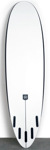 The Greedy Beaver has a real shortboard feel with a compressed longboard outline, a true crossover board with midlength retro glide and shortboard maneuverability. Put it on rail while engaging the single to double concave, step on the rounded pin and it surfs like a shortboard in the pocket. Or take advantage of the single to double concave and large planing surface to trim effortlessly over dead sections. The beveled rail reduces the overall thickness, adding performance including rapid direction changes.